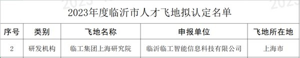 近日,臨沂市科學(xué)技術(shù)局公布2023年度臨沂市人才飛地認(rèn)定名單,臨沂臨工智能信息科技有限公司成功入選。此次入選“人才飛地”是對公司在人才引進(jìn)、培養(yǎng)以及研發(fā)創(chuàng)新方面的充分肯定和高度認(rèn)可。